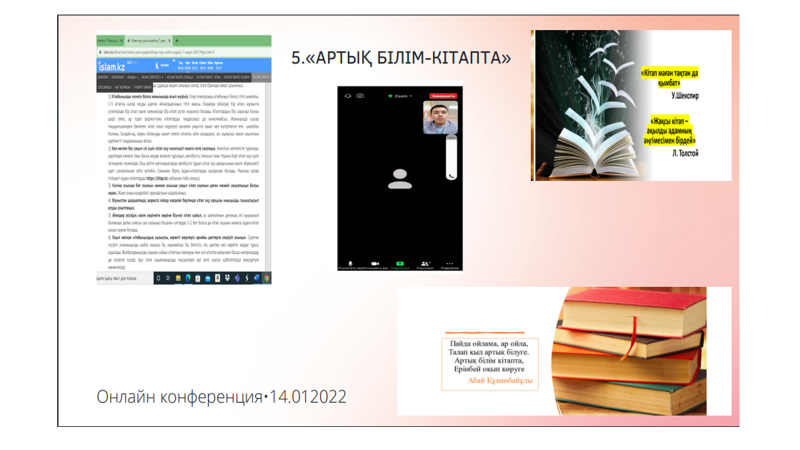 «Шұғыла» қайырымдылық қорының қолдауымен, «Дария Дамыту орталығының» ұйымдастыруымен, «Тұлға болам» республикалық кітап оқу жарысы тұрақты түрде өтіп отырады. Онлайн конференция барысында оқушыларға «Тұлға болам» атты жарыс өткендігі, алдағы уақытта жалғасын табатындығы туралы мәліметтер берілді. Жиналыс соңында МП ақпарат фракция басшысына жарыс туралы мәліметтерді әлеуметтік желі арқылы таратуға тапсырма берілді. Тапсырмалар өз уақытылы орындалды. Әлеуметтік желі арқылы 258 адам мәліметтермен танысты.