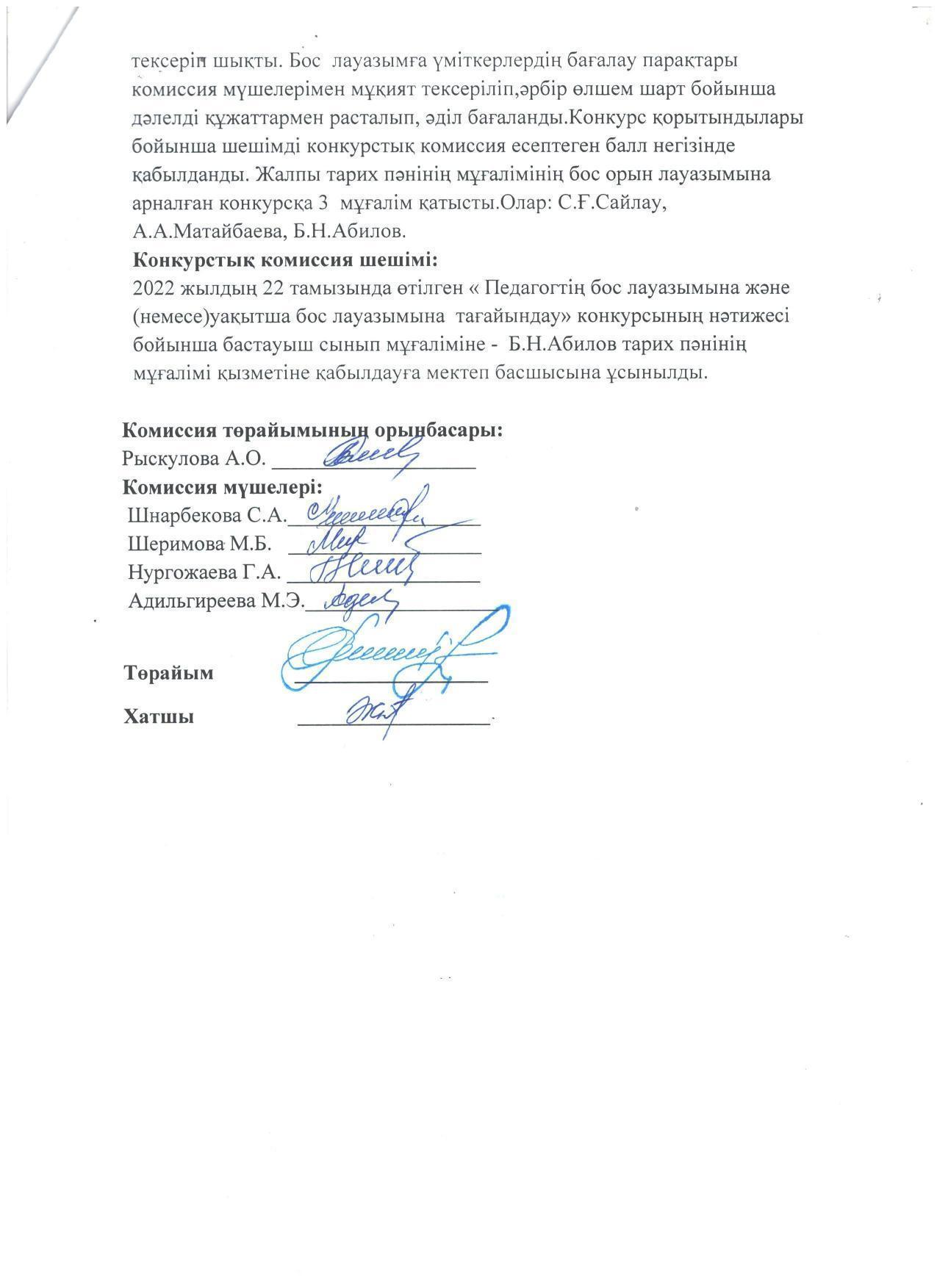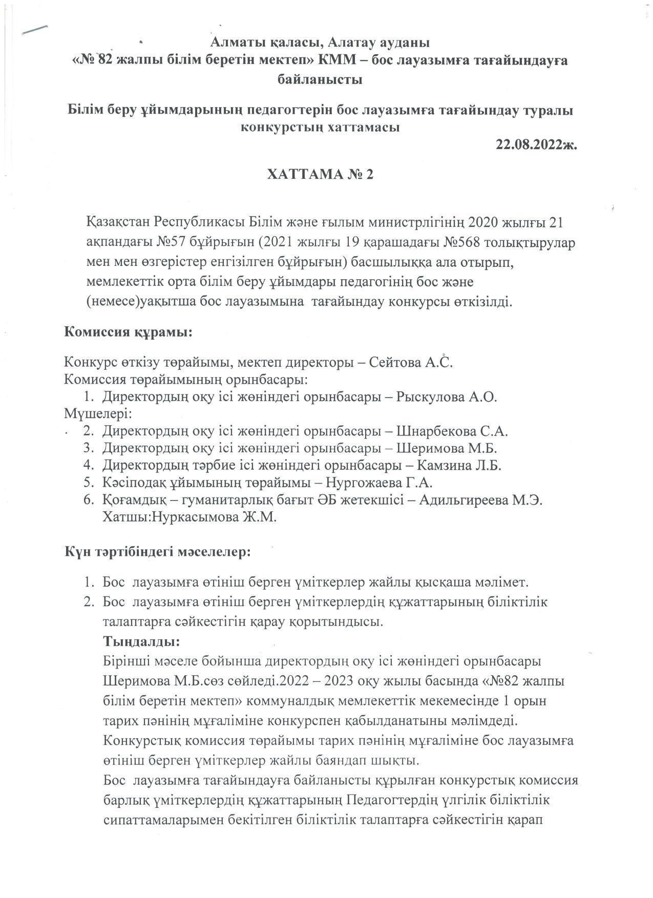 22 тамыз 2022 0 1 2 3 4 5 Білім беру ұйымдарының педагогтерін бос немесе уақытша бос лауазымдарға тағайындау туралы конкурстың хаттамасы