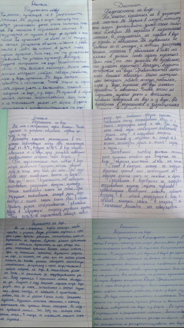 04 мамыр 2021 0 1 2 3 4 5 "Судағы қауіпсіздік" №82 ЖББМ бойынша "Судағы қауіпсіздік" тақырыбында 1-11 сынып аралығында сынып сағаттары, диктант және шығарма жазу жұмыстары, сурет көрмесі ұйымдастырылды.