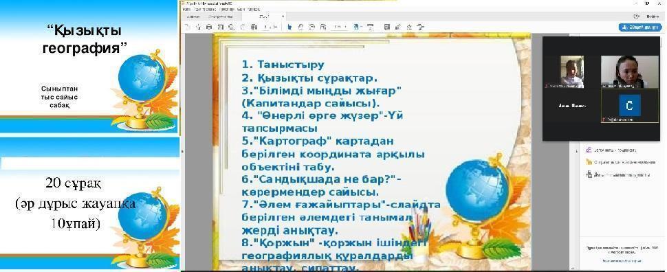 16 ақпан 2021 0 1 2 3 4 5 "Қызықты география" Туркеева А.С. ұйымдастыруымен Google Meet арқылы 7-6 сынып оқушыларымен «Қызықты география» тақырыбында викториналық сұрақ-жауап сайысы өткізілді.