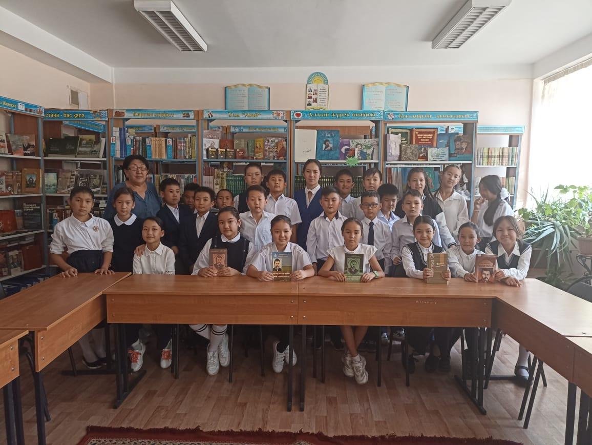 Ахмет Байтұрсынұлының 150 жылдығына орай "Алаштың ардақтысы" атты кітапханада таныстырылым сағаты өткізілді. Бұл кітап көрмесіне 5"А" сыныбымен қазақ тілі пәні мұғалімі Пан Айдана Жанарханқызы қатысты. Ақын және оның еңбектері туралы қазақ тілі мен әдебиеті пәнінің бірлестік жетекшісі Жанысбекова Улпан Шоқанқызы сөз алып, оқушыларға жан-жақты ақпарат берді. Кітапханашы Кенебаева Бибігүл оқушыларды ақынның кітаптарымен таныстырды.