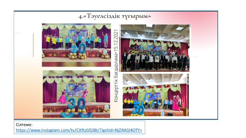 - «Тәуелсіздік-тұғырым» атты мерекелік кеш