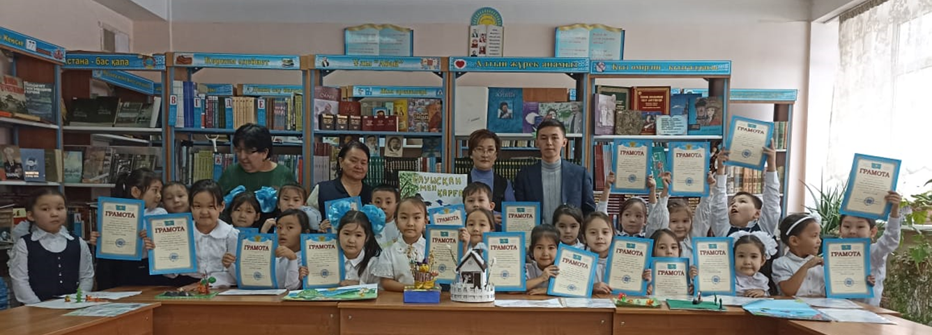 Мектеп кітапханасында "Оқуға құштар мектеп" жобасы негізінде "Ертегілер елінде" атты байқау болды. Байқауға 1 "А" - сынып оқушылары қатысты. Оқушылар ертегі желісі бойынша суреттер салып, қолөнер бұйымдарын жасады. Балалар еңбегі бағаланып, белсенділік танытқан оқушылар мектеп директоры Сейтова Асем Сайлаубекқызының грамотасымен марапатталды.