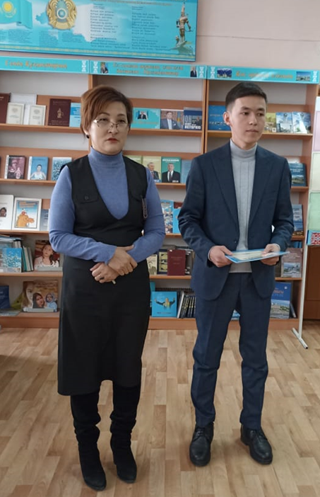 Оқушылардың сынып жетекшісі Кожаканова Ултуар Мусакановна Республикалық Ғылыми-Педагогикалық Кітапхананың директоры А.Ш. Сайдембаеваның құрмет грамотасымен марапатталды.
