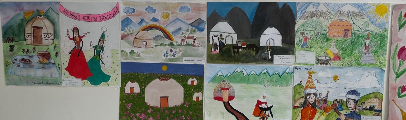№82 жалпы білім беретін мектепте Наурыз мерекесіне орай 1-4 сыныптар арасында “Наурыз шуағы” тақырыбында сурет көрмесі өткізілді.