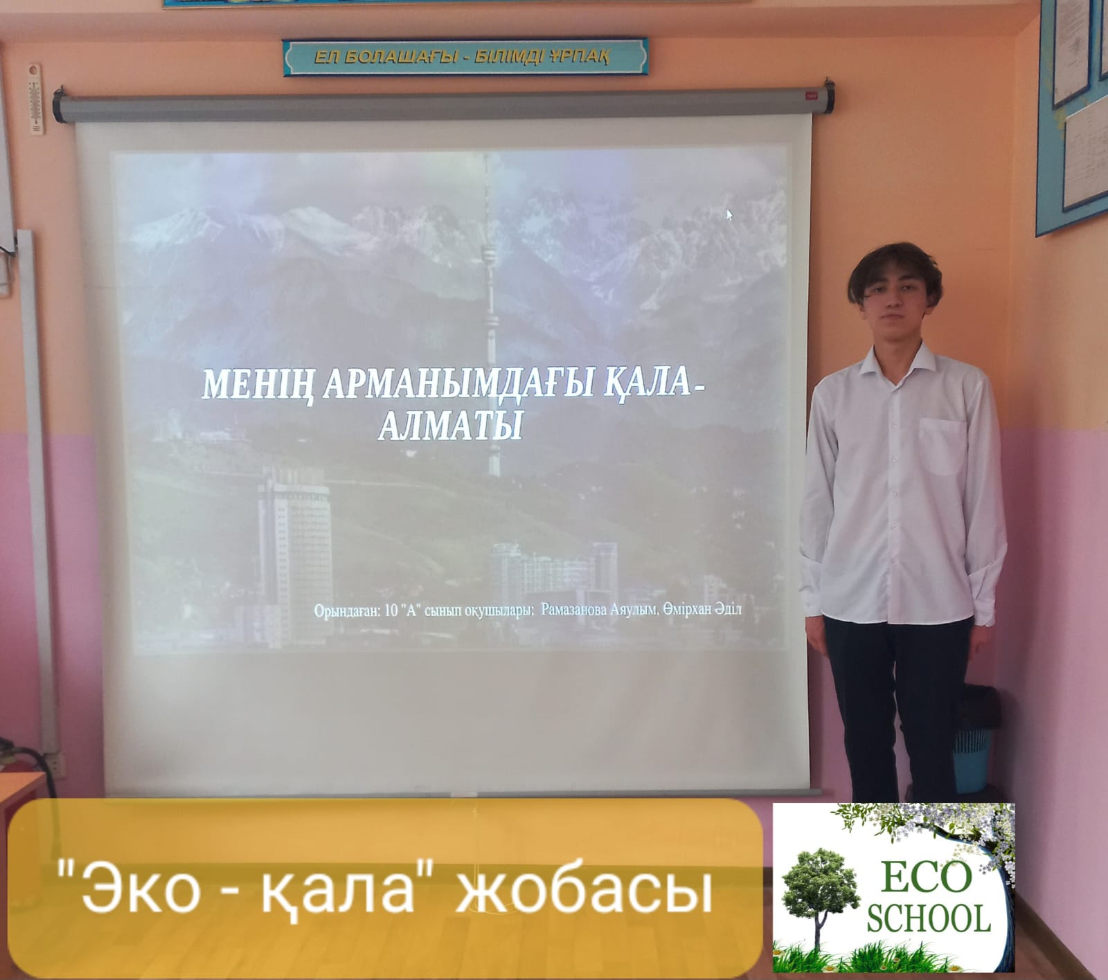 Халықаралық балаларды қорғау күні мерекесіне арналған "Жасыл Алматы" (экология және қорғашан орта) байқауының 9-11 сынып оқушылары арасында "Эко -қала" номинациясының мектепішілік кезеңі болып өтті. Жобалар байқауы "Менің арманымдағы қала - Алматы" тақырыбында болды. Нәтижесінде 10 А сынып оқушылары Рамазанова Аяулым мен Өмірхан Әділ келесі кезеңге жолдама алды.
