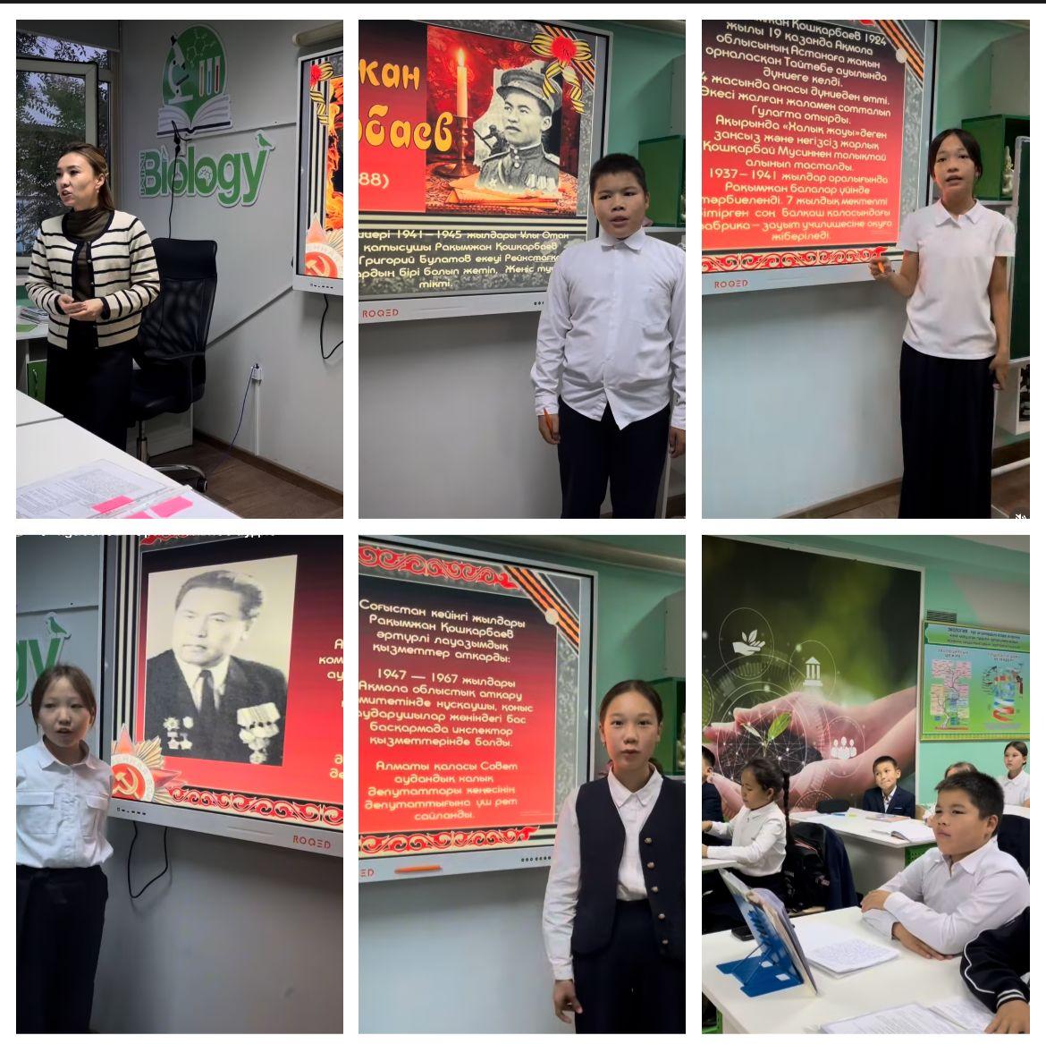 ЖББ мектепте 6 “А” сынып оқушыларымен “Рақымжан Қошқарбаев кім” тақырыбында іс-шара өткізілді.