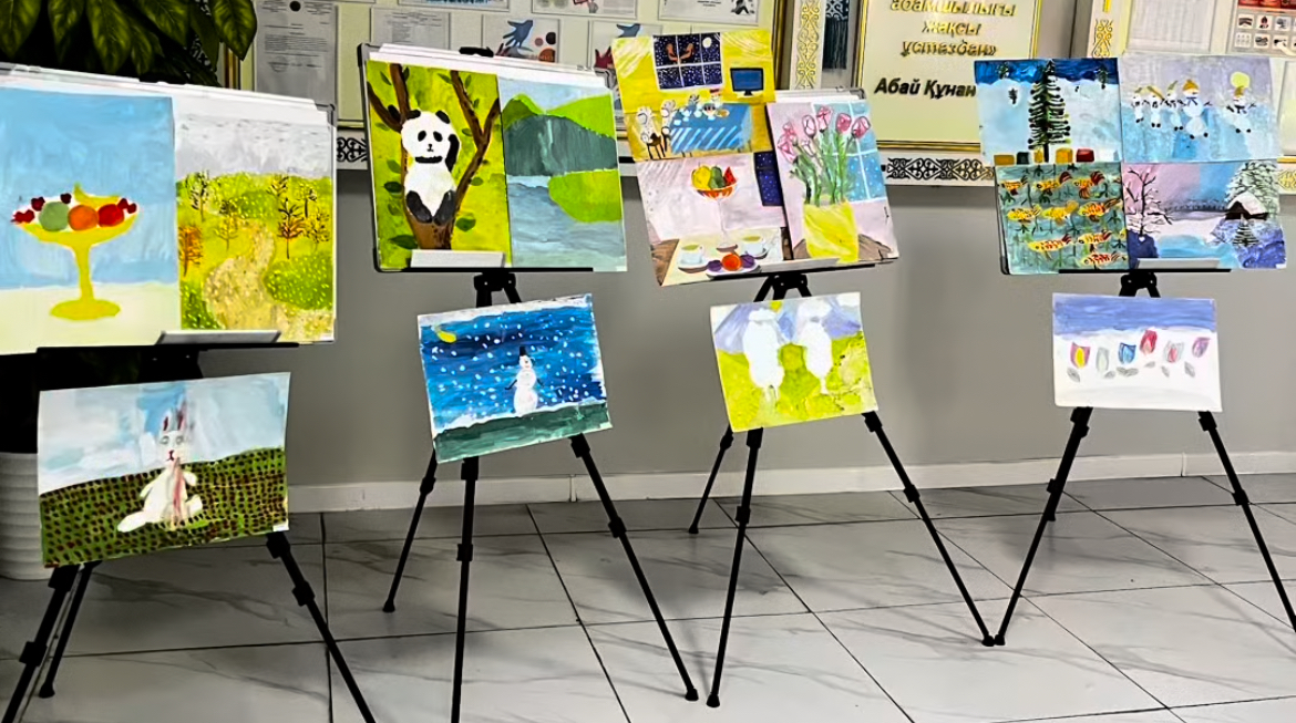📝Балалар түрлі-түсті қарындаштармен, бояулармен еліміздегі бейбітшілікпен достықты,қоғамдық келесім мен бақытты балалық шақты, жыл мезгілдерін бейнеледі.