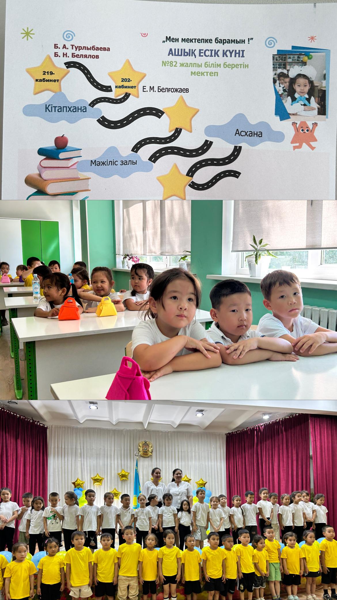 16 мамыр күні Алатау ауданы білім бөліміне қарасты МКҚМ №31 бөбекжай-балабақшасының әдіскері Еспулова Алмагуль Қуанышқановна бастаған тәрбиеленушілері мен тәрбиешілері №82 ЖББ мектепке “Мен мектепке барамын” атты ашық есік күніне келді. №82 мектеп ұжымы №31 бөбекжай-балабақшасының тәрбиеленушілерін жылы қарсы алып, пәндік кабинеттер информатика, химия кабинеттері, кітапхана және мектеп асханасымен таныстырып өтті. №31 бөбекжай-балабақшасының тәрбиеленушілеріне кездесу өте қызықты тартымды өтті.№31 бөбекжай-балабақшасының тәрбиеленушілеріне кездесу концерттік бағдарламамен жалғасты. №82 ЖББМ бастауыш сынып мұғалімдері мен оқушыларының дайындаған әндері мен билерін тамашалады.