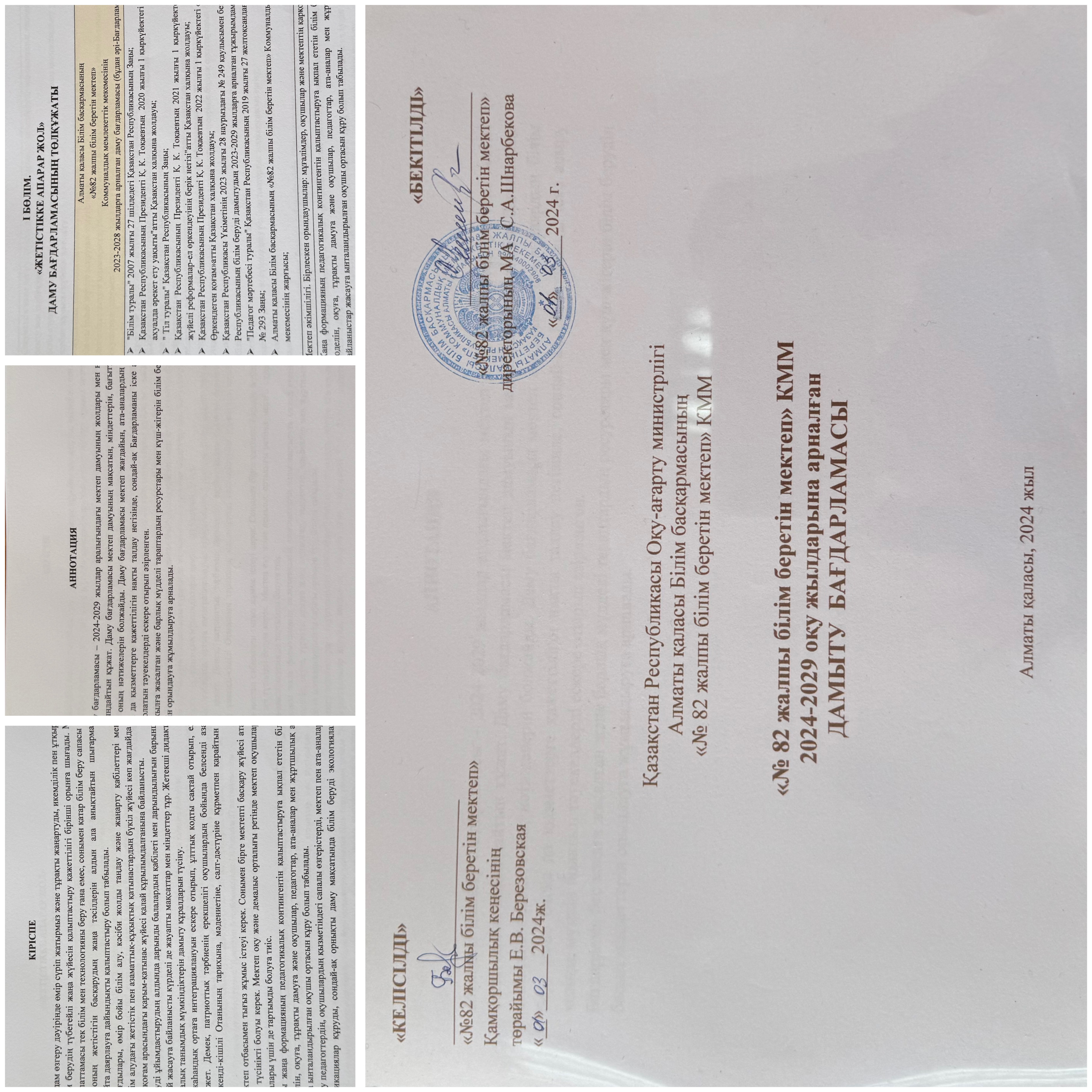 "№82 жалпы білім беретін мектеп" КММ 2024-2029 оқу жылдарына арналған ДАМЫТУ БАҒДАРЛАМАСЫ