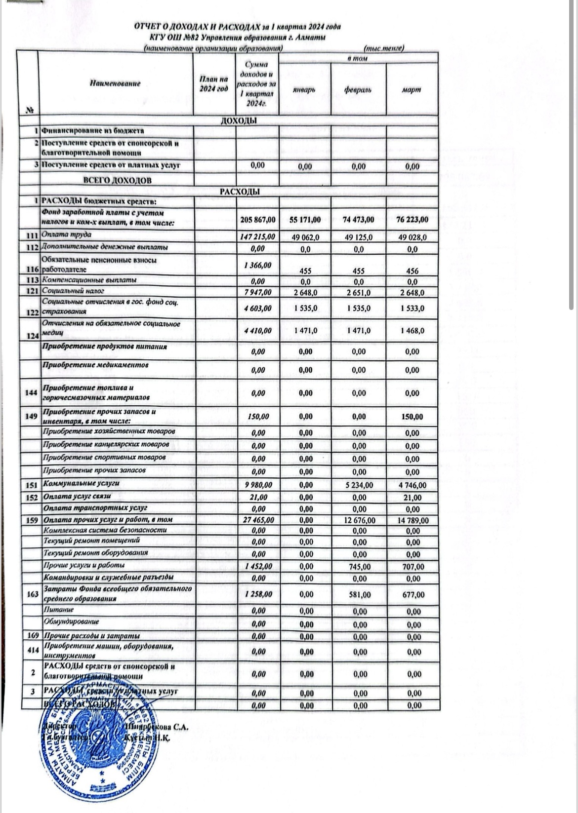 » Отчет о доходах и расходах за 1 квартал 2024 года