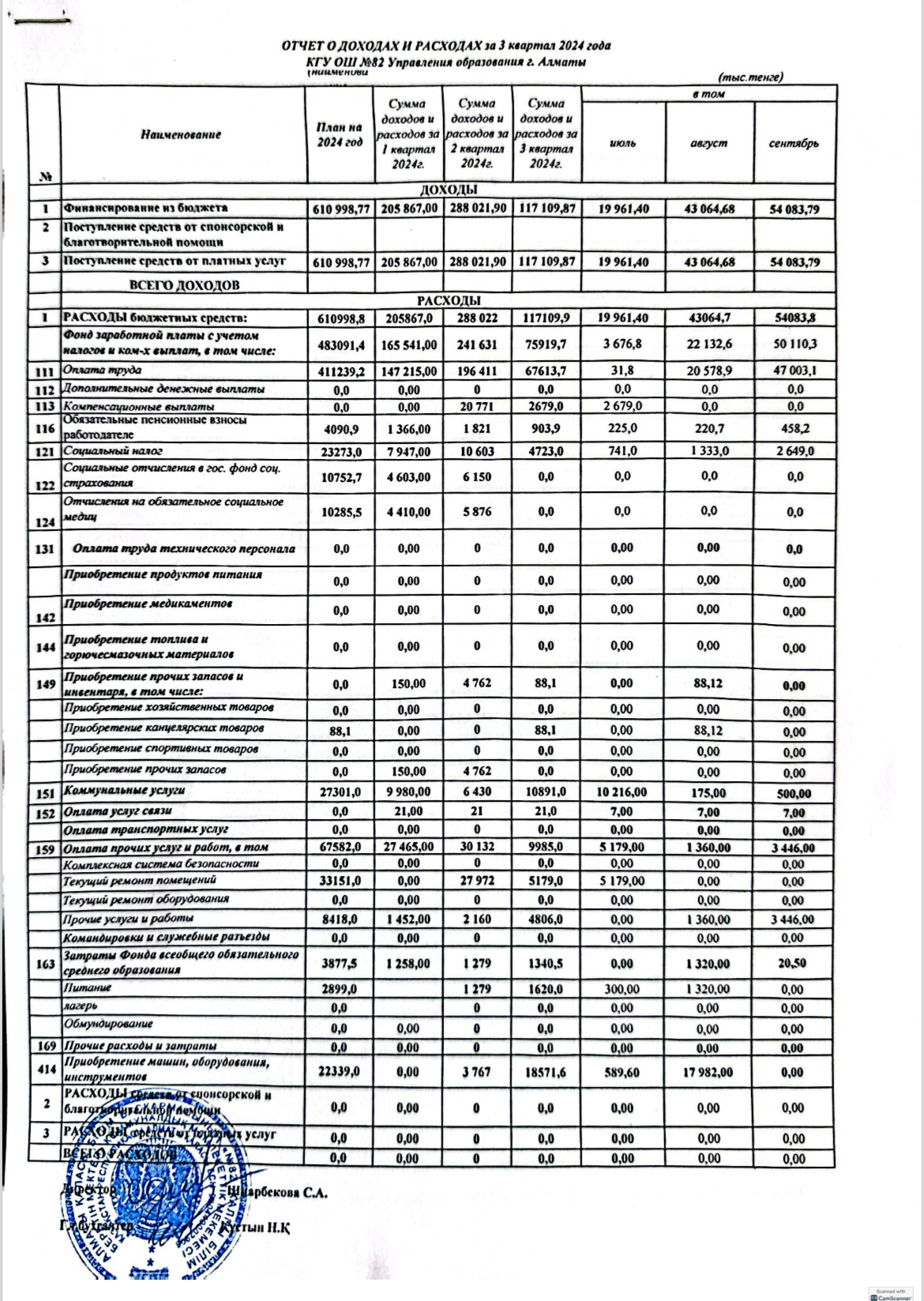 » Отчет о доходах и расходах за 3 квартал 2024 года
