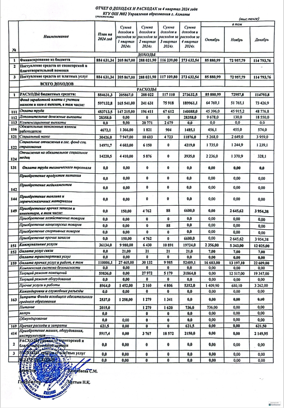 » Отчет о доходах и расходах за 4 квартал 2024 года