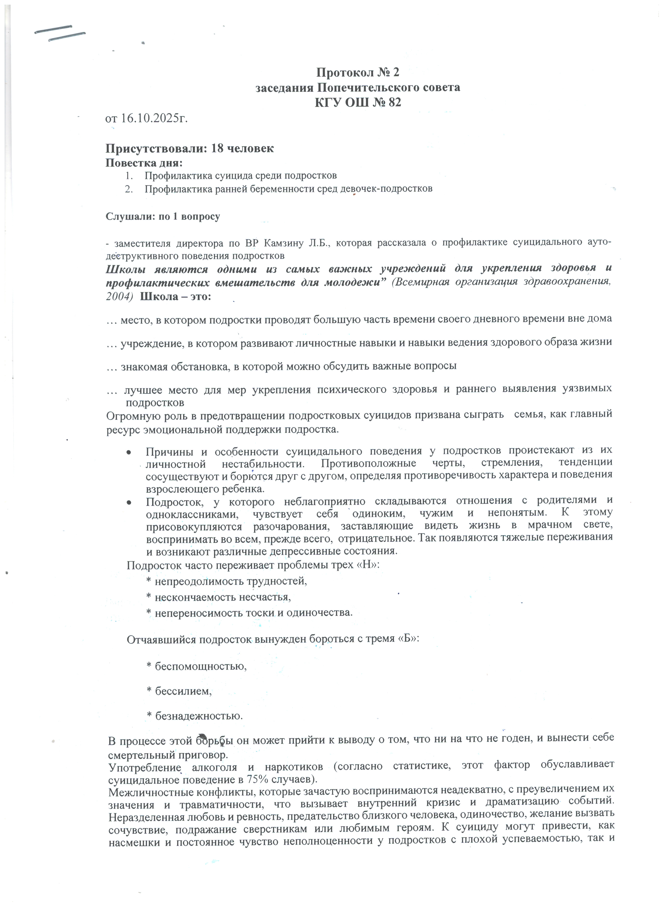Қамқоршылық кеңесінің № 2 хаттамасы. Протоколо № 2 Попечительского совета