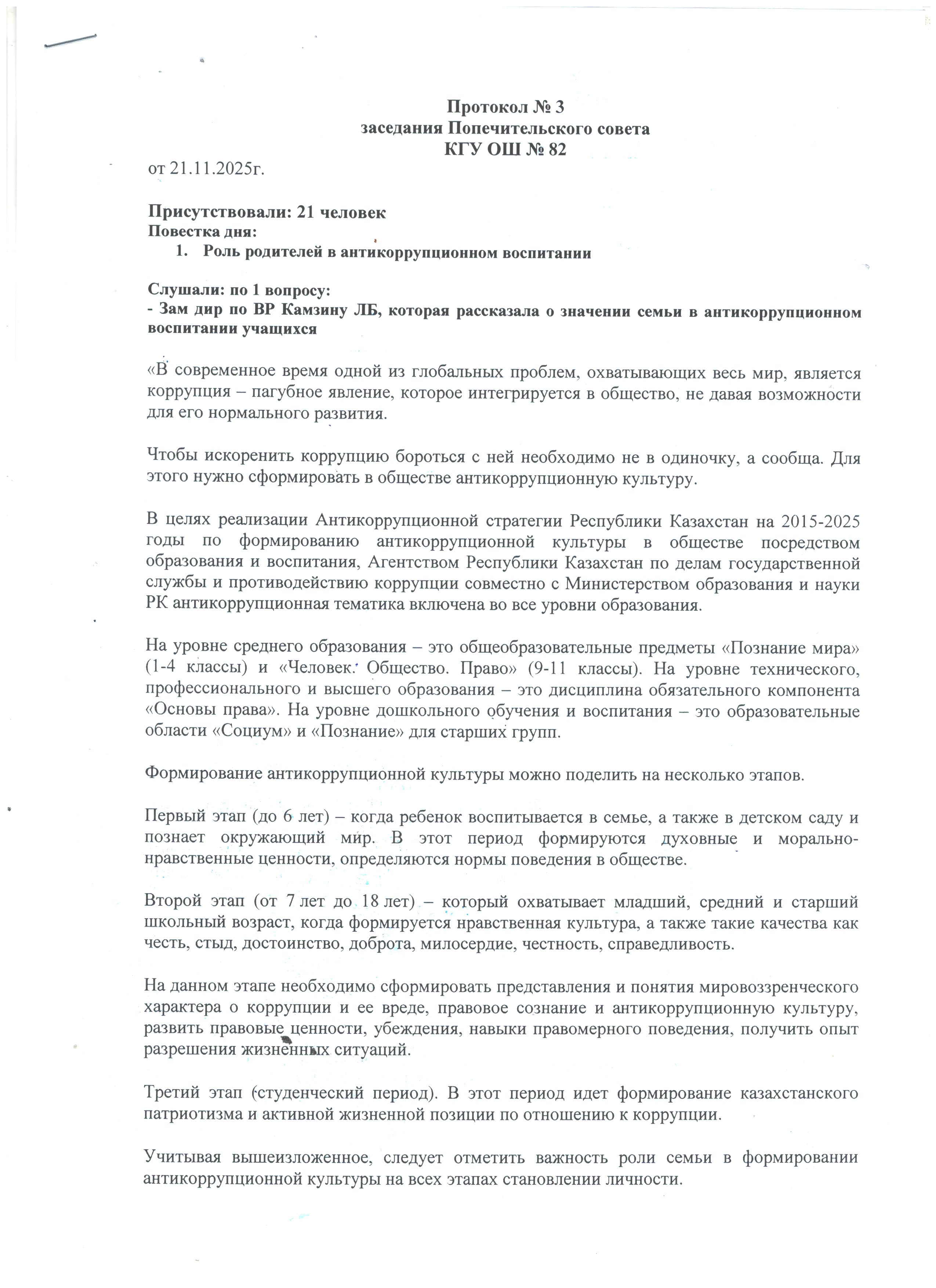 Қамқоршылық кеңесінің № 3 хаттамасы. Протокол № 3 Попечительского совета