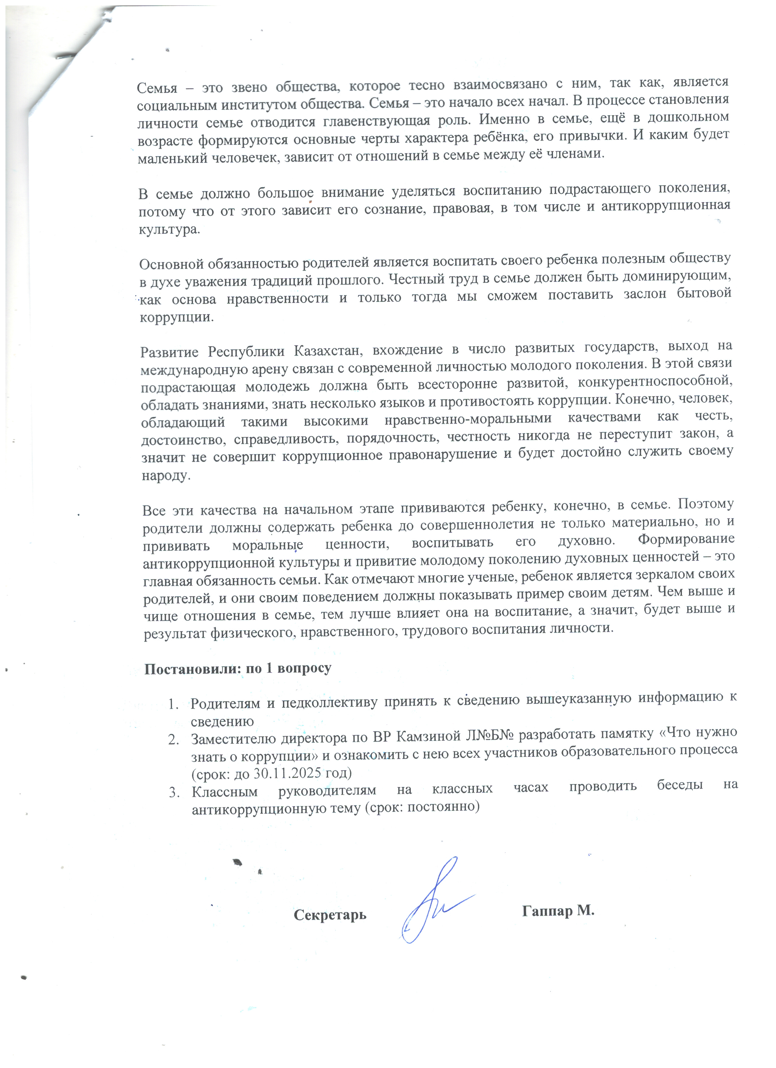 Қамқоршылық кеңесінің № 2 хаттамасы. Протоколо № 2 Попечительского совета