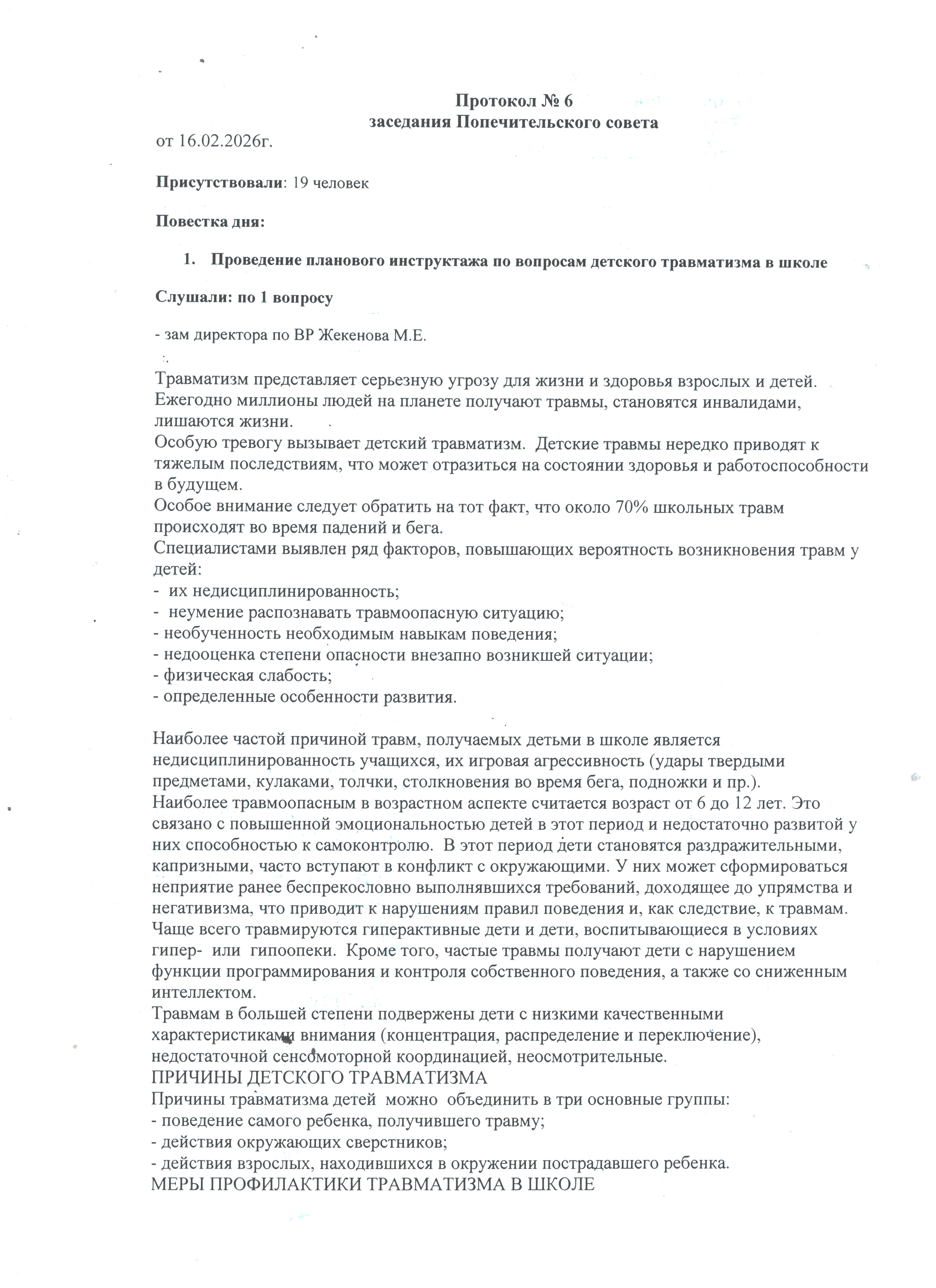Қамқоршылық кеңесінің № 6 хаттамасы. Протокол № 6 ПС