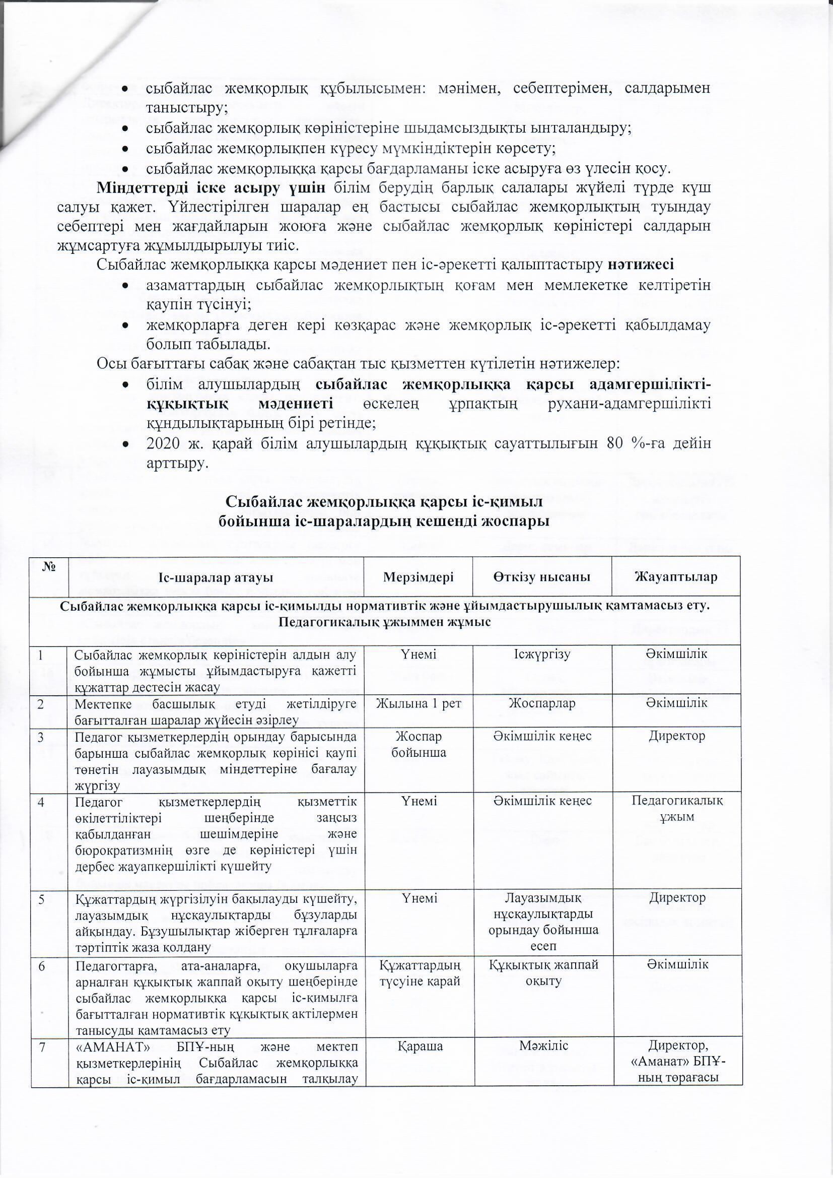 31 тамыз 2022 0 1 2 3 4 5 №82 жалпы білім беретін мектептің сыбайлас жемқорлыққа қарсы іс-қимыл бағдарламасы
