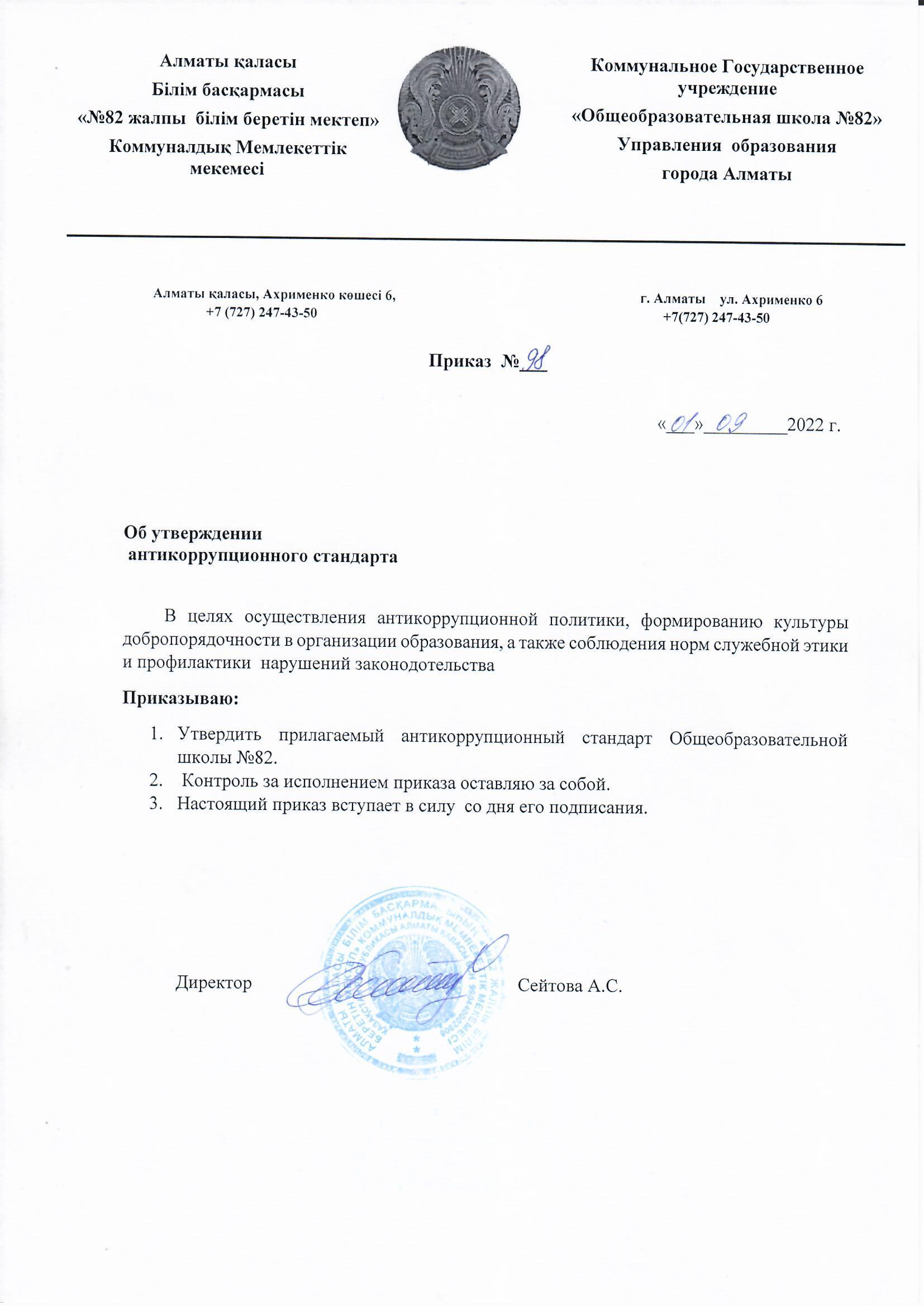 » Сыбайлас жемқорлыққа қарсы стандарт бұйрықтары