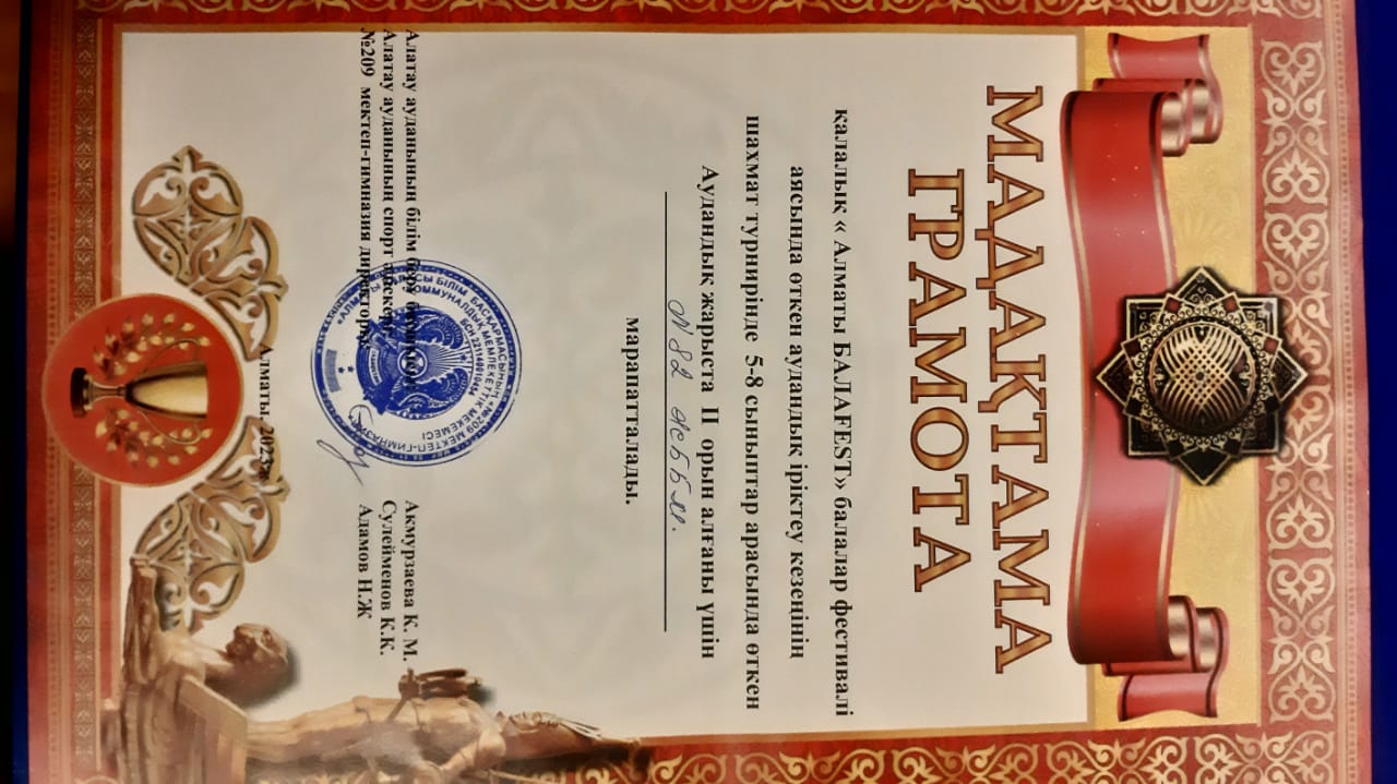 21 сәуір 2023 0 1 2 3 4 5 Шахмат турнирі Қалалық "Almaty БАЛАFEST" балалар фестивалі аясында өткен аудандық іріктеу кезеңінің шахмат турнирінде 5-8 сыныптар арасында өткен Аудандық жарыста жүлделі ІІ орын алғаны үшін №82 ЖББМ марапатталады.