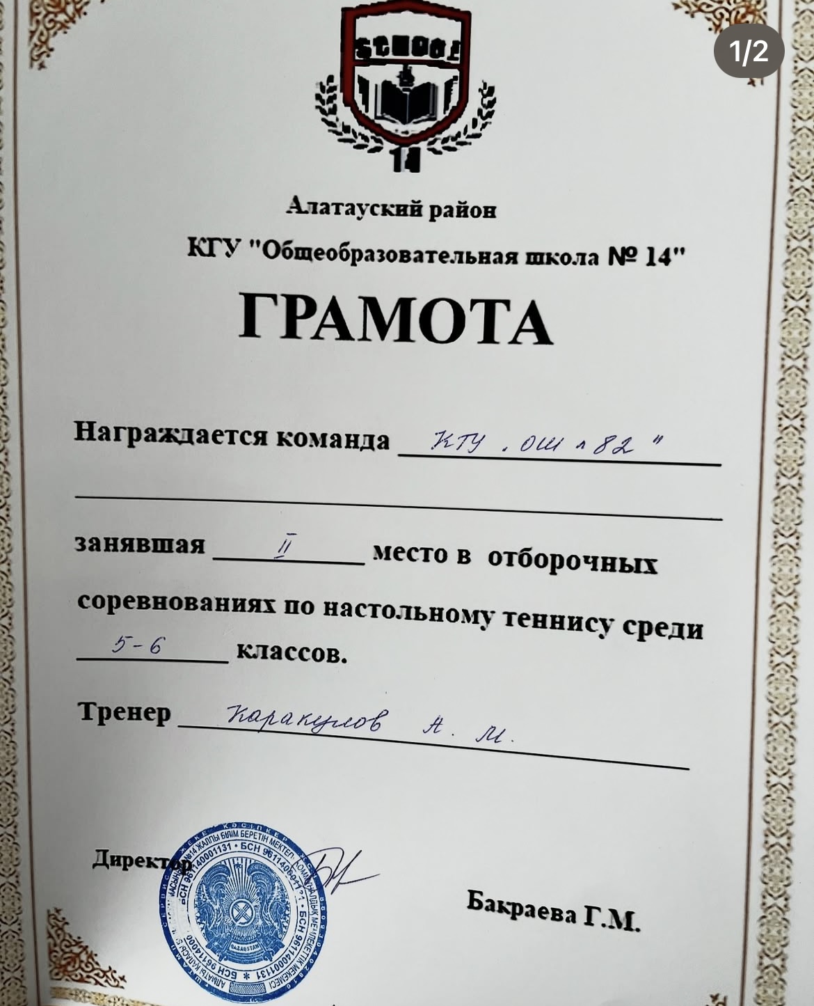 16 қаңтар 2025 0 1 2 3 4 5 Оқушы жетістігі Награждается команда “КГУ ОШ №82” занявшая II место в отборочных соревнованиях по настольному теннису среди 5-6 классов.Тренер:Каракулов А.М