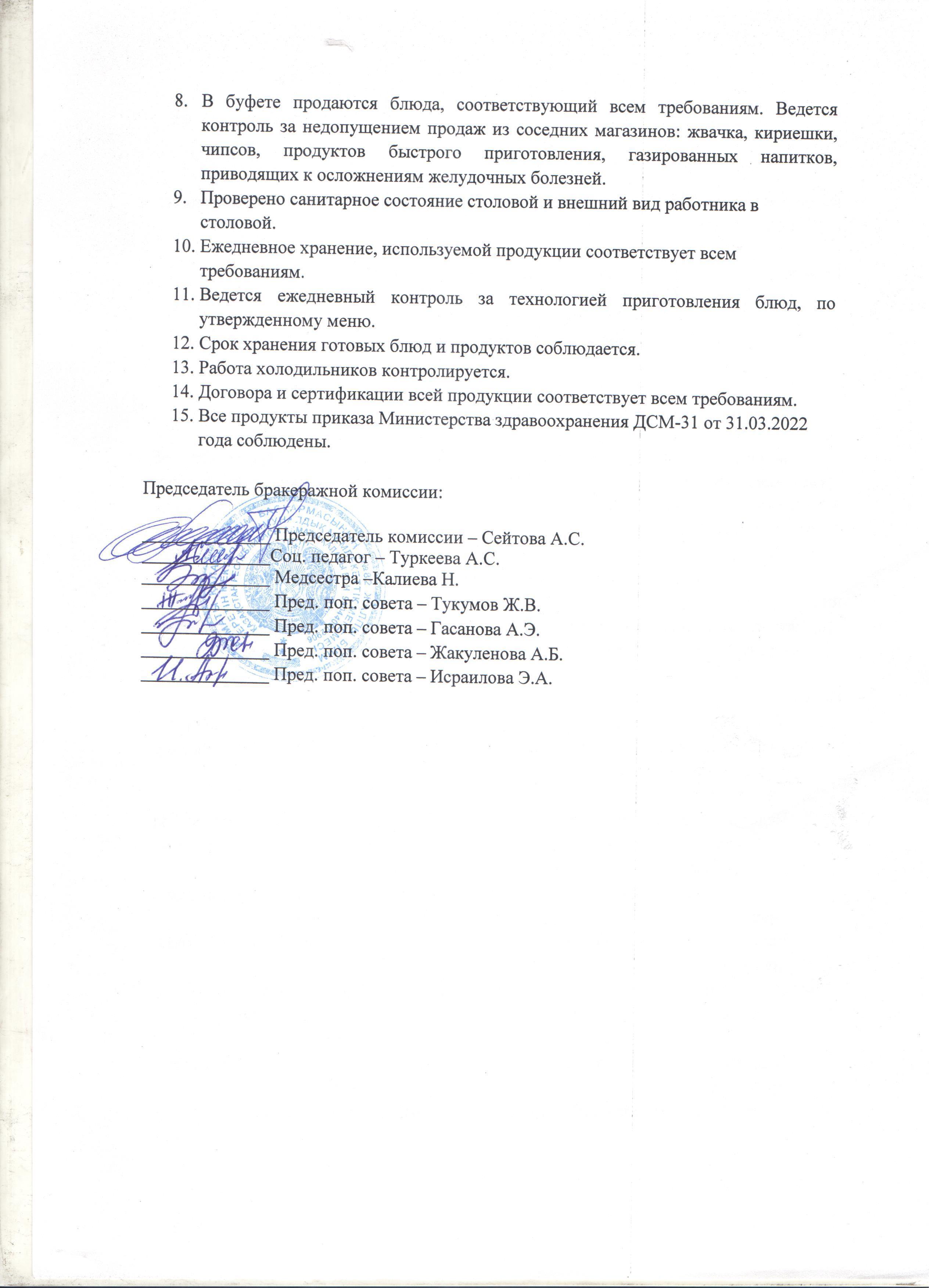 АКТ проверки бракеражной комиссии на 15.03.2024 год